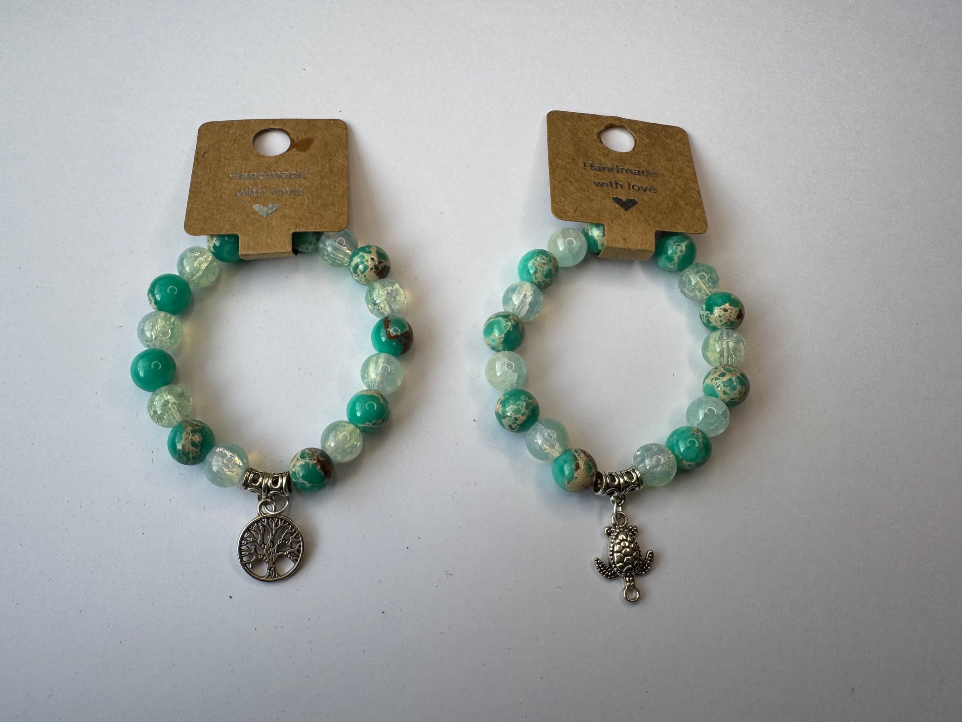 Natural Green Imperial Stone With Plain Black Beads Bracelet